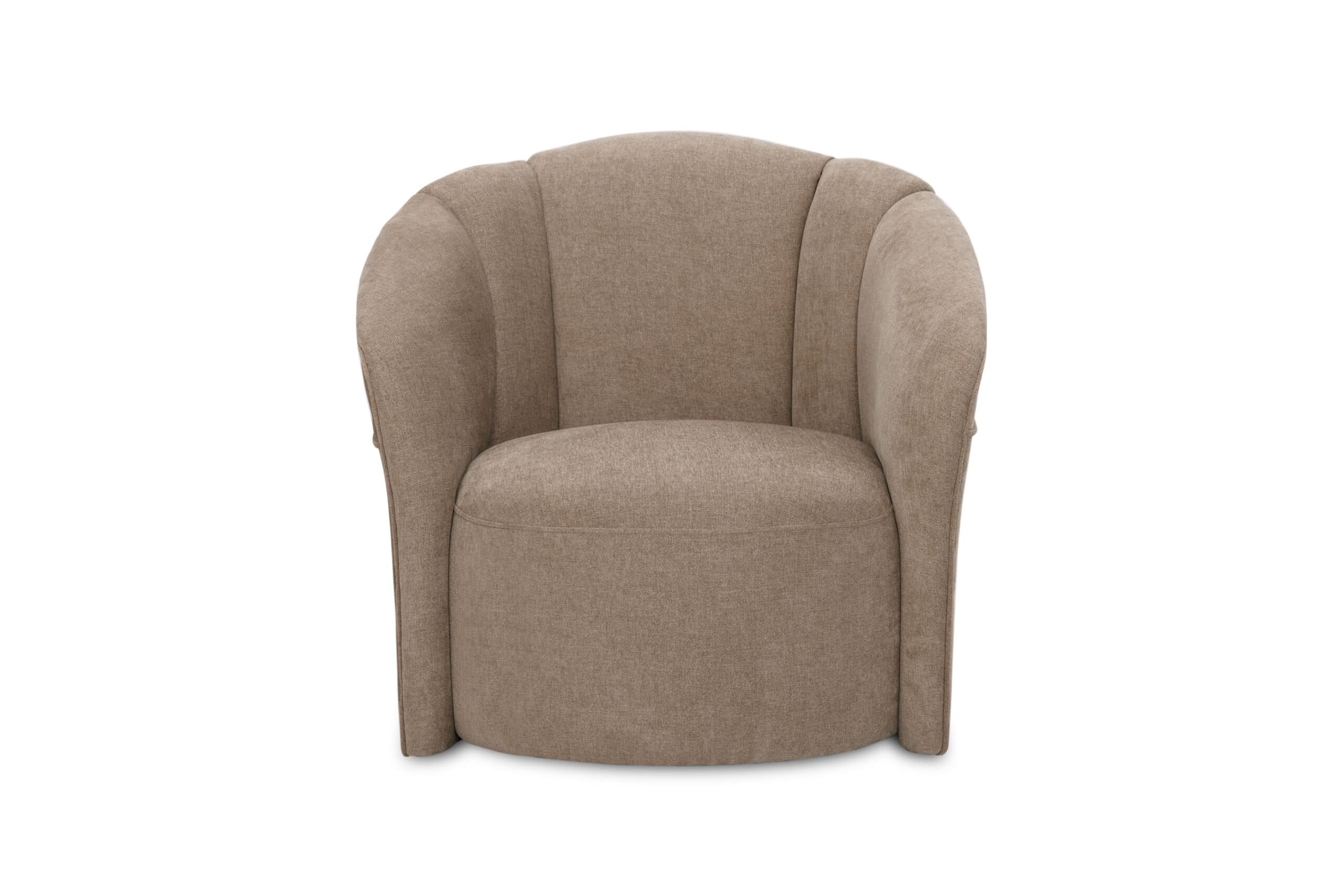 כורסא מעוצבת בקווים מעוגלים ורכים , עם מושב עמוק ותמיכה נוחה לגב ולידיים.