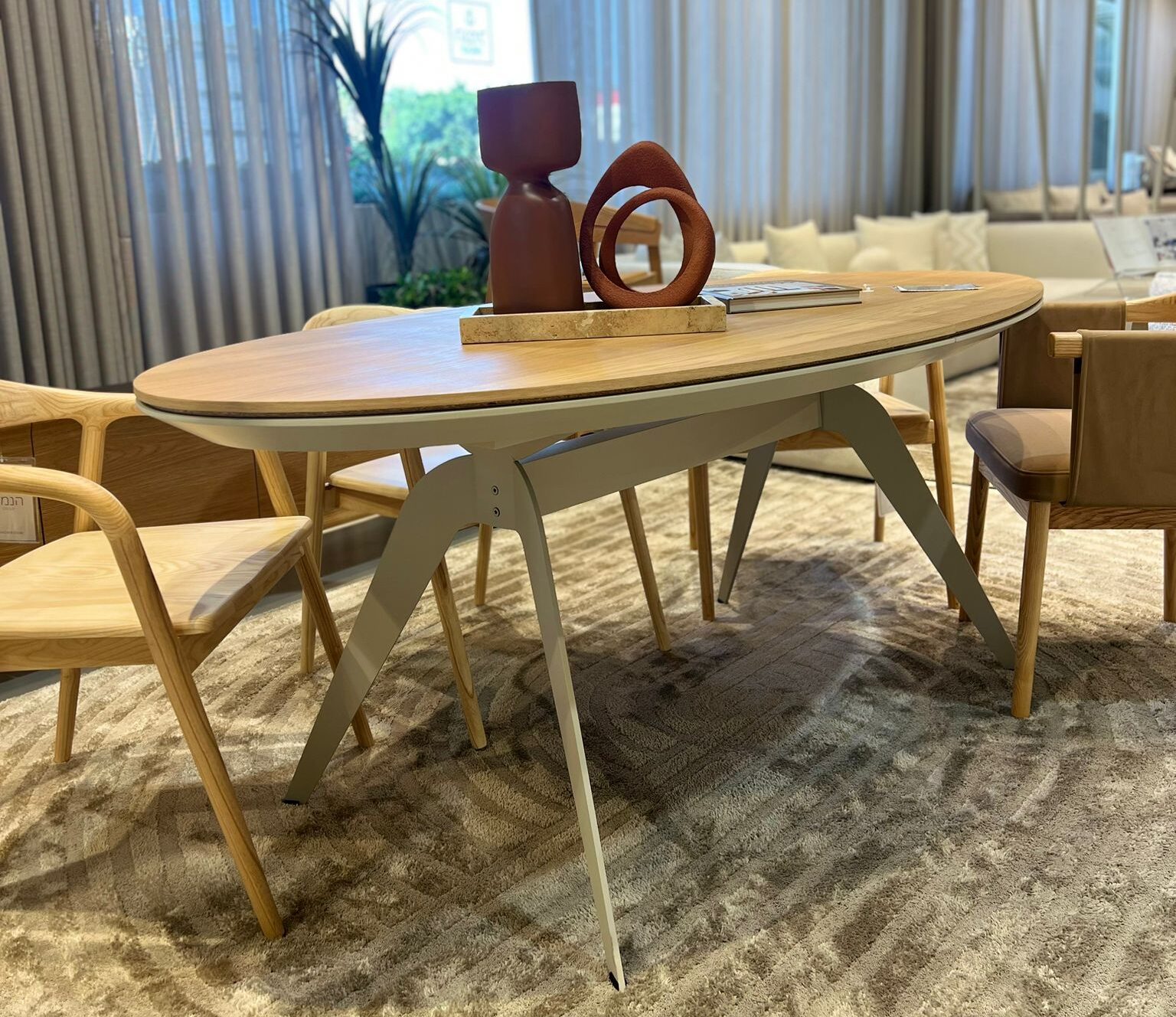 שולחן אוכל אליפטי בעיצוב מודרני ומרשים .