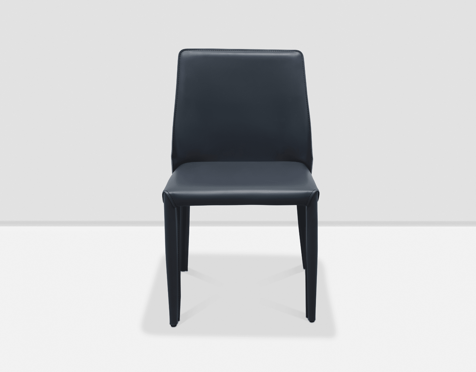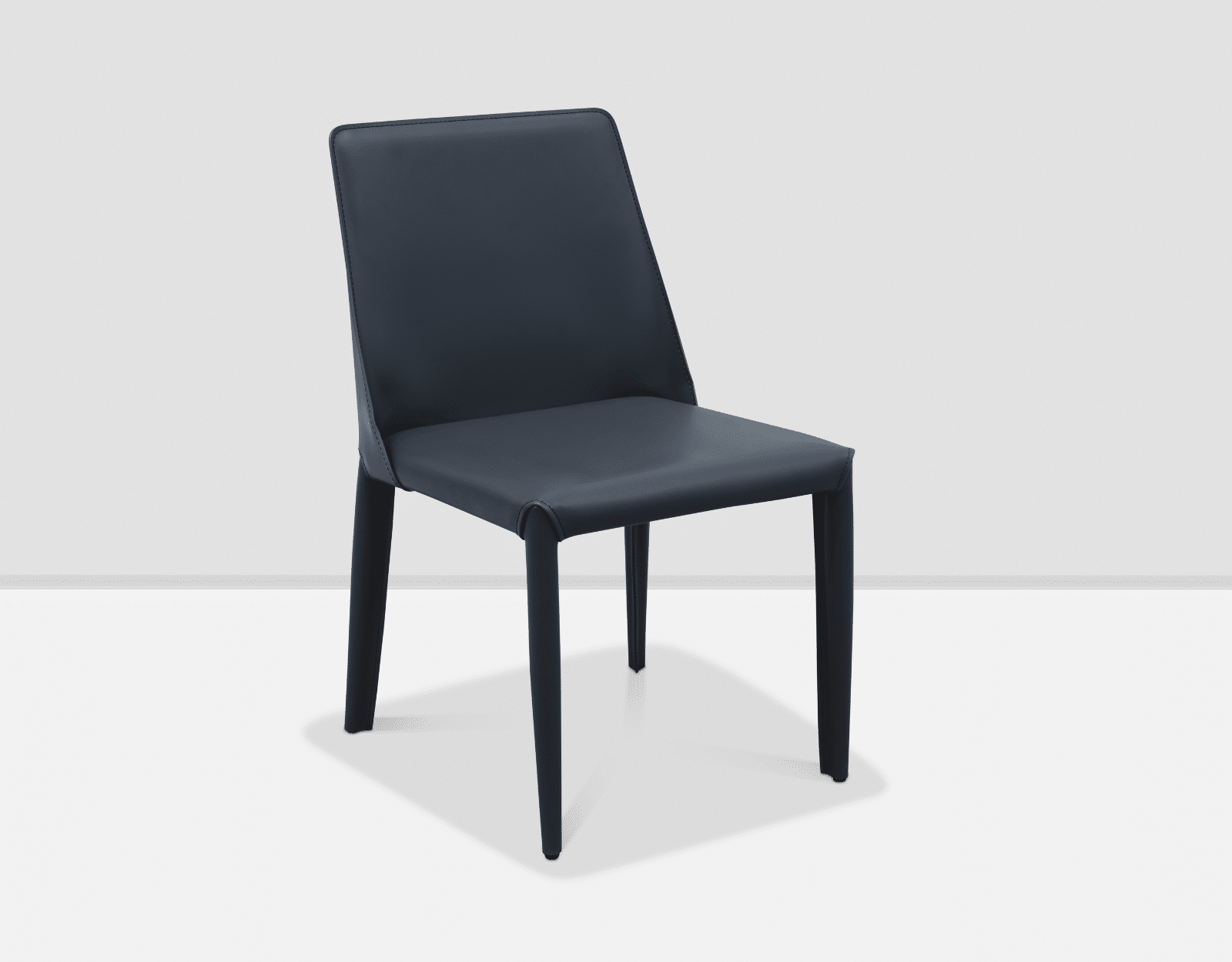 כיסא אוכל מעוצב ואיכותי, מושב דמוי עור בצבע אפור עם רגלי ברזל בעל יציבות ועמידות גבוהה.