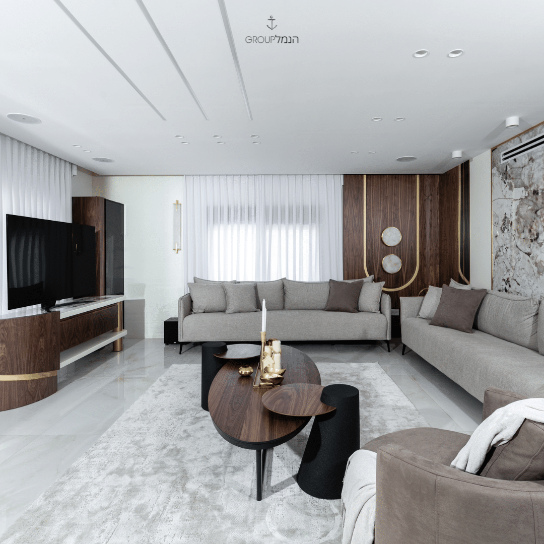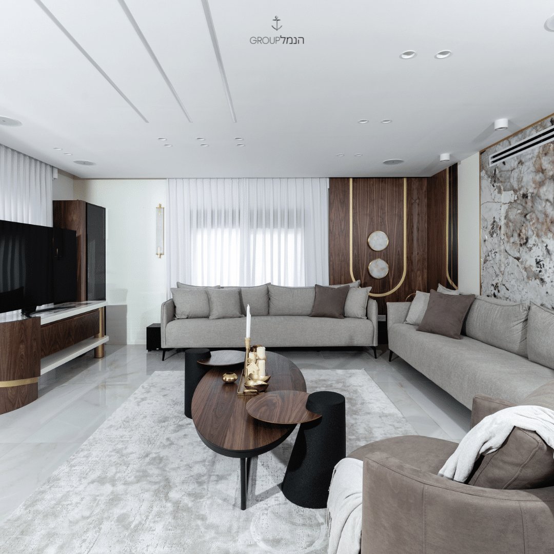 רהיטי הפרויקט: ספה דגם Sabrin | כורסא דגם Hermes | שולחן סלון Milano | נשכן Teo | שולחן אוכל Denmark | כיסאות אוכל Special | כיסאות | שולחן אוכל דגם Spaider | סט שולחנות Isabel |